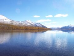 Summer on the lake is short and windy, with average air temperatures no higher than 6–10 degrees Celsius. Winter is harsh, with polar nights with icy winds, and temperatures down to minus 25–30 degrees. Ice on the lake lasts from mid-September to the end of June, and longer in cold years. The banks of the reservoir are mostly flat, low-lying, overgrown with lichens and shrubs, and there are areas with open forests. There are hunting huts on the northern shore. Hunting on Lake Mogotoevo is carried out for waterfowl, reindeer, polar wolf and hare. Area: 342,92001 sq. km., volume: 12527,83 cubic meters, depth avg: 36,5 m, shore length: 183,42999 m, res time: 116464,3, elevation: 8.