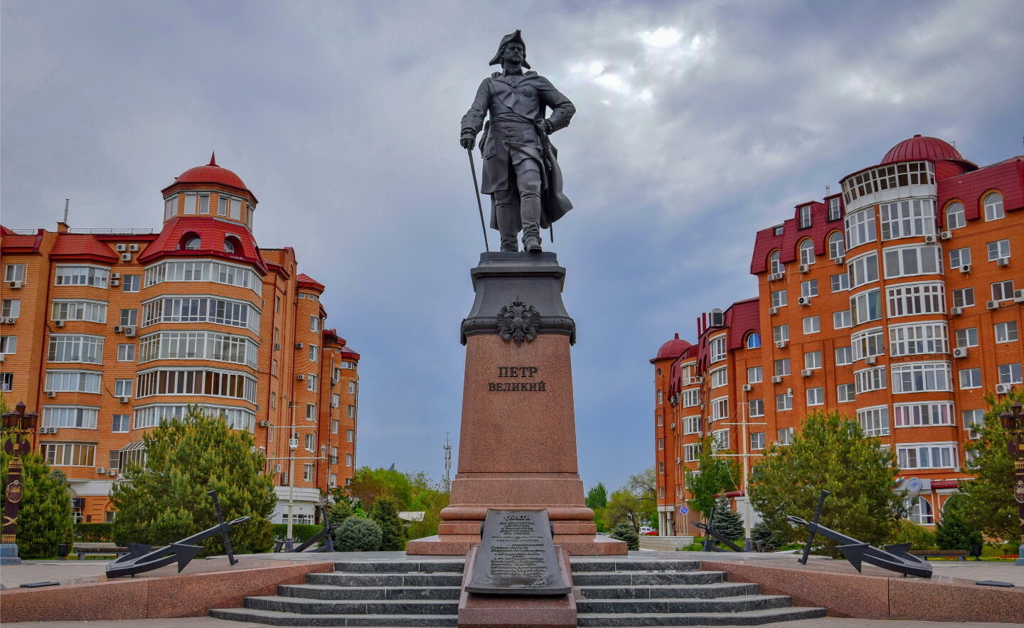 Монументальная статуя императора на набережной Астрахани стала символом города и его морской истории.