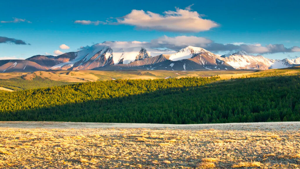 The highest mountain in Tuva, its peak is at 3,976 meters. The rock is part of a mountain range located on the territory of the Ubsunurskaya Basin Nature Reserve. The protected status allows the steppe and tundra zones, alpine meadows to remain intact. Snow leopards, argali, sarlyks and other rare animals live in the vicinity of Mongun-Taiga, grayling is found in the reservoirs.