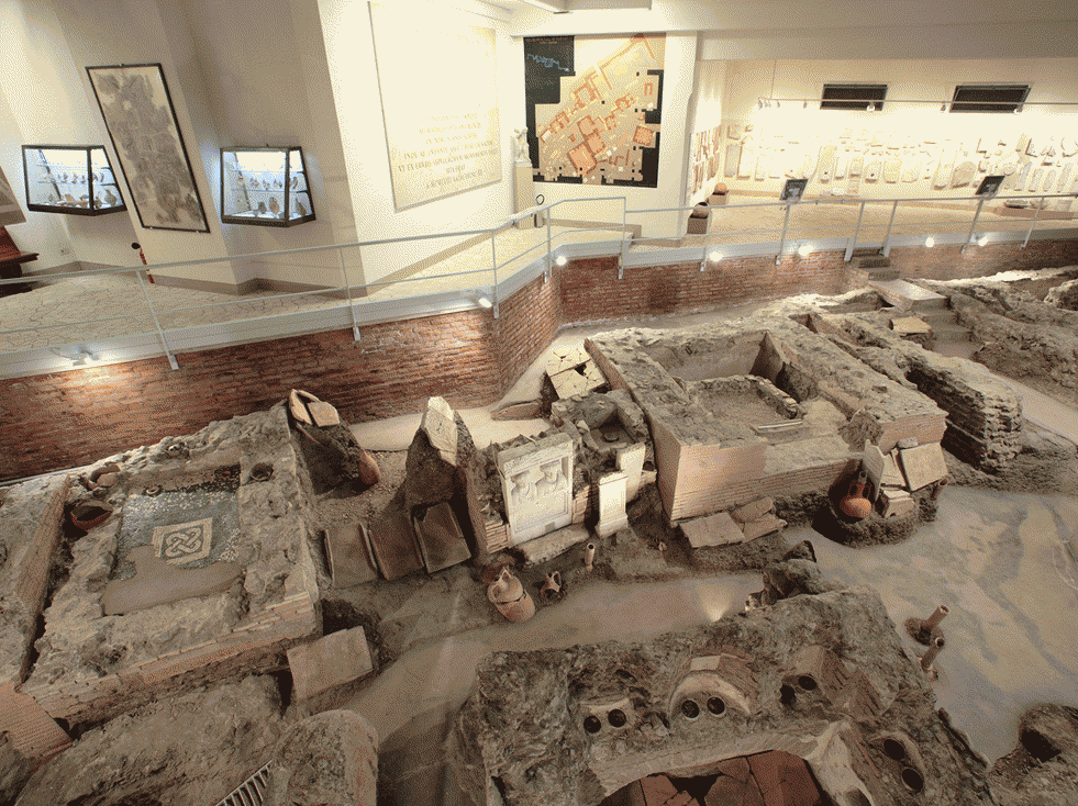 From the side of this road, which borders the Vatican Hill, the tombs are distributed along the slopes on a number of terraces. The landscape was characterised by a great variety of tombs, collective and individual, arranged along paths and in squares, often used for ceremonies linked to the cult of the dead. It is a unique archaeological site in terms of the excellent state of conservation of the items unearthed, and of great interest for deepening knowledge of pagan funerary practices. In many cases inscribed funerary stelae have been found, clarifying the identity of the deceased and their individual stories, often relating to members of the middle and lower echelons of imperial Roman society.