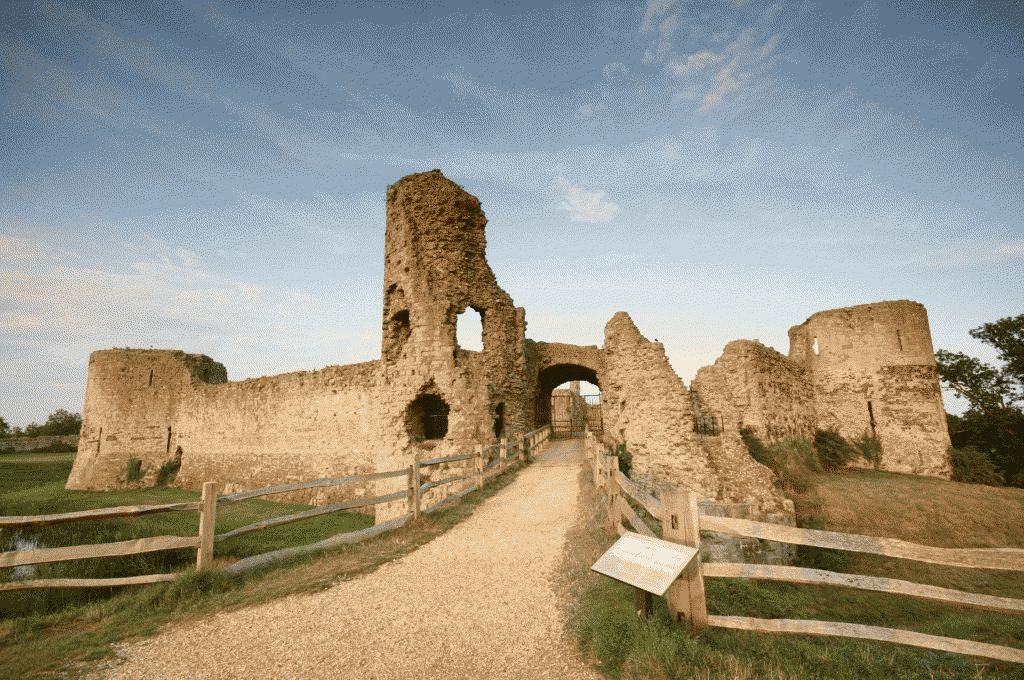 The first castle to be built in England after the Norman conquest. Pevensey Castle resides in East Sussex, England, along the southern coast. Its strategic location near Pevensey Bay is why a fortification had existed here since around 290 when the Romans built the Saxon Shore fort of Anderitum. After the Roman occupation ended, the fort walls protected the area until at least the late 5th century.