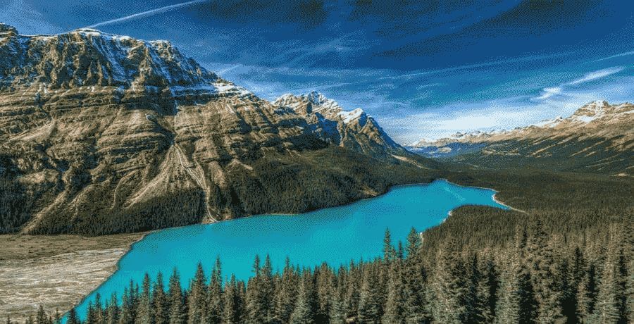 This stunningly beautiful lake is located in the Canadian Rockies, in Banff National Park. Scientists believe that the incredible color that delights many tourists is given to the lake by specific mountain glacial flour that arrives here from the glaciers that feed the amazing reservoir and turns the water into thick turquoise. The popularity of the lake was also brought by its unusual shape, reminiscent of a wolf’s head.