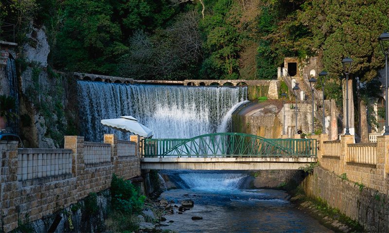 To drain the swamps, in 1882 a dam with a waterfall was erected on the Psyrtsha River. The height of the water fall is 8.6 meters, the length is 21 meters. A hydroelectric power station was built nearby, which has been regularly performing its functions for many years. During the construction of the hydroelectric power station, a picturesque lake was formed nearby — it is easy to climb the stone stairs to it.