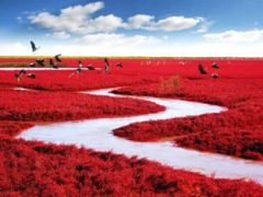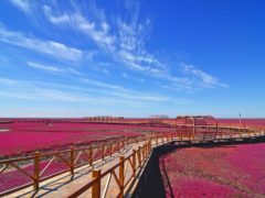Very cool and very weird, this beach is covered in a type of seaweed called Sueda, which turns bright red in autumn. Thirty kilometres southwest of Panjin in China, these tidal wetlands are an important nature reserve for migrating birds. Only a small section of the beach is open to the public, but it can be explored via a wooden walkway that stretches out to sea.