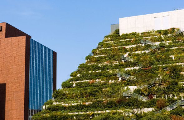 The Step Garden was designed to blend the large ACROS building into the adjacent Tenjin Central Park and help to improve the environment of the city in Japan. It covers 5,400 square metres, includes more than 50,000 plants and is one of the largest rooftop gardens in country.