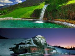 The Swarovski Crystal Worlds (Swarovski Kristallwelten) is a museum, located in Wattens, Austria. The museum was built in 1995 in celebration of the 100th anniversary of the Austria based crystal company Swarovski. The Crystal Worlds Centre is fronted by a grass-covered head, the mouth of which is a fountain.