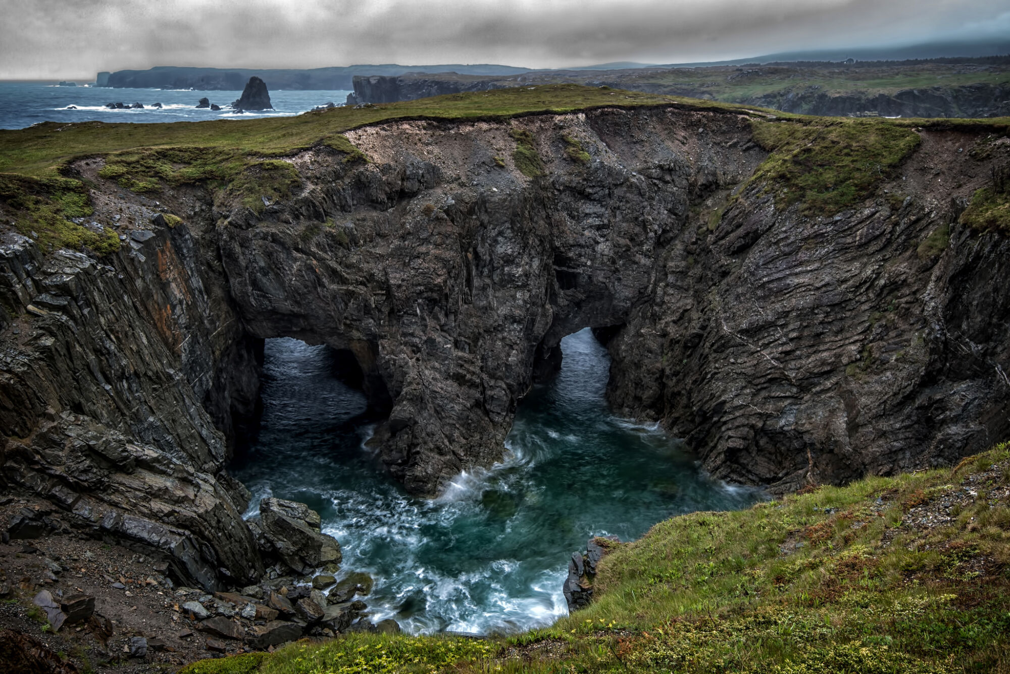 One of Newfoundland’s smallest provincial parks, the highlight is an oceanside sinkhole penetrated by waves that pass through two openings in a gigantic archway. A frequent stop for tour busses, but otherwise you generally have the place to yourself.