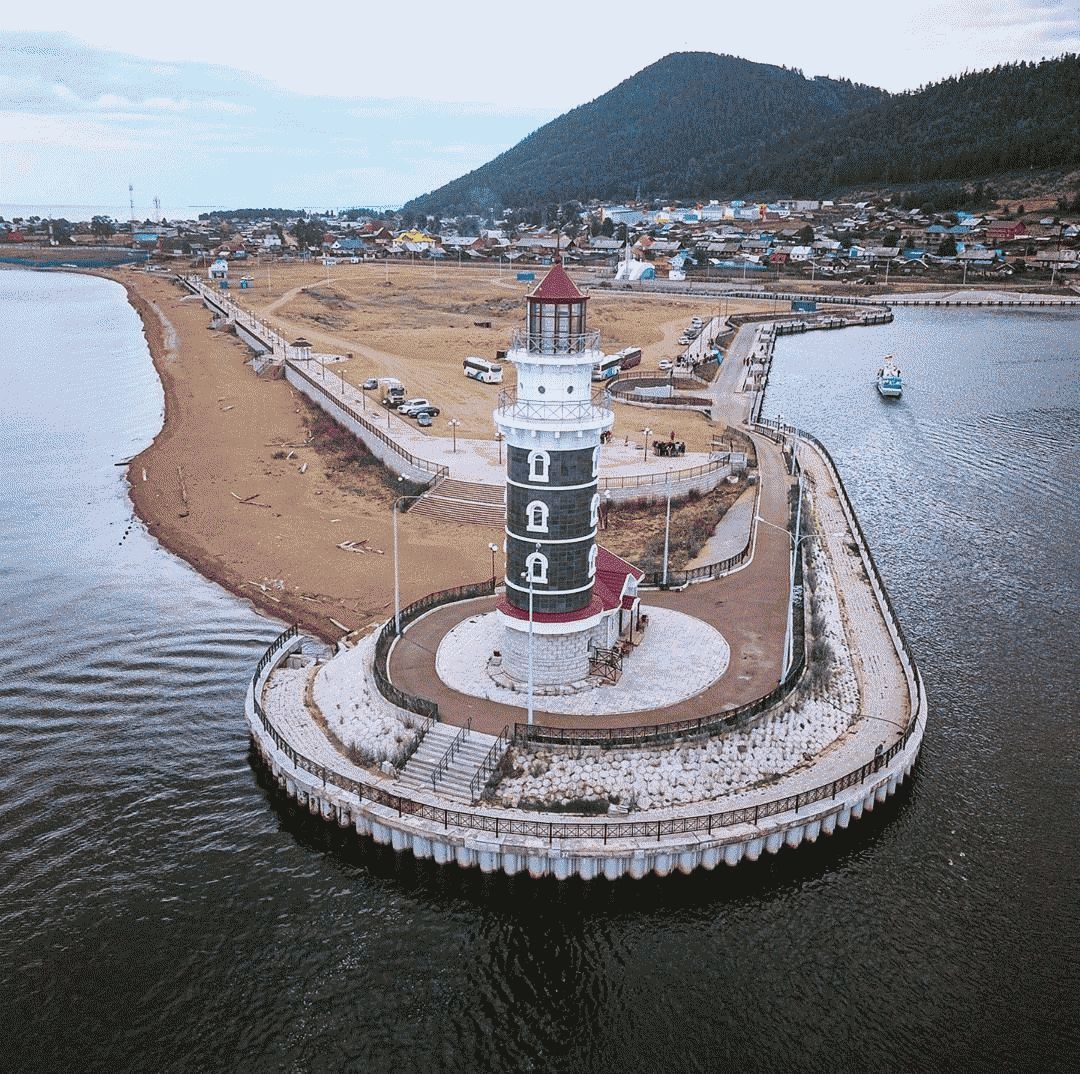 Маяк на берегу Байкала, действующий навигационный ориентир.