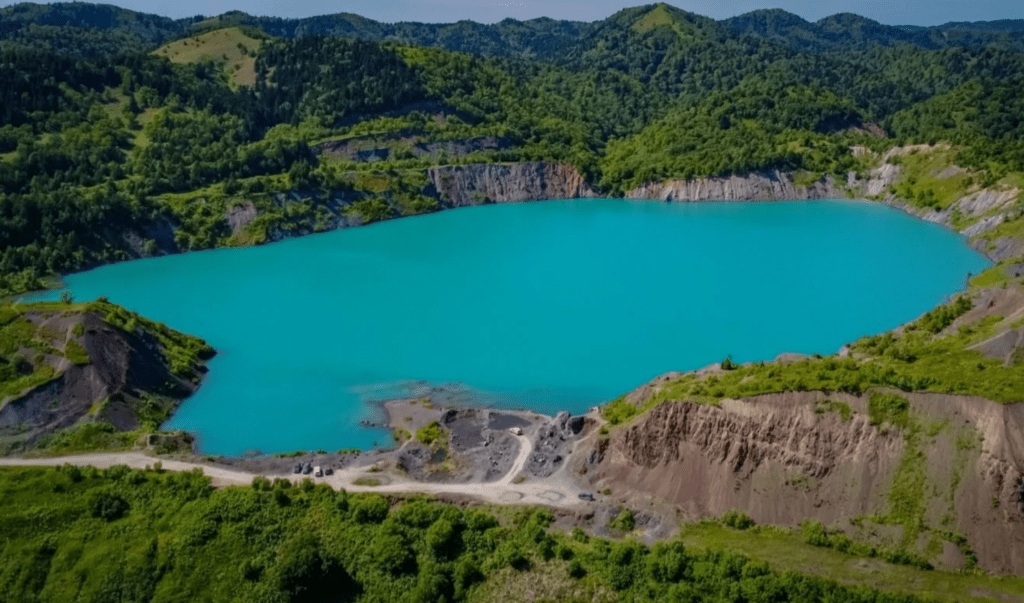 In Soviet times, there was a Novikovsky coal mine here. When the quarries were abandoned, rainwater gradually filled the voids and, mixing with the germanate sulfosalts contained in the quarries, acquired an incredibly blue color.