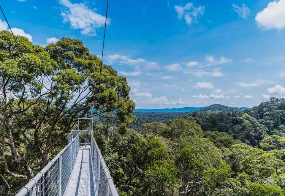 A tropical rainforest reserve with canopy walkways, river tours, waterfalls, and scenic viewpoints.