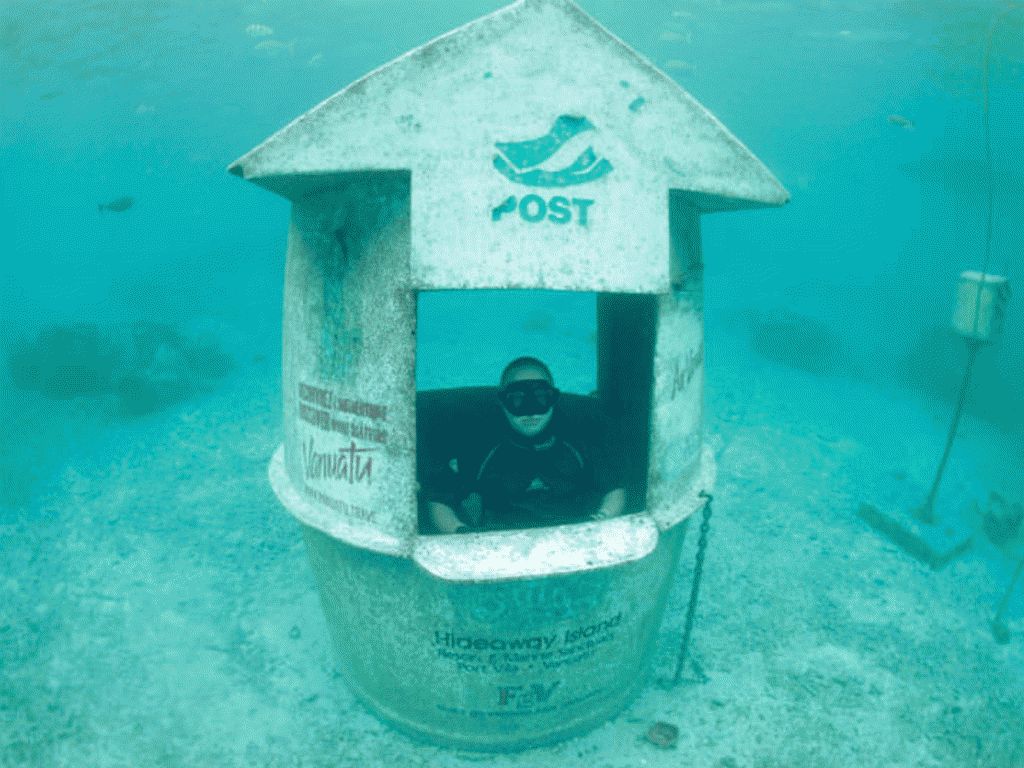 The only underwater post office in the world. Every day, workers at the underwater post office process waterproof mail.