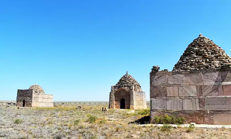 The necropolis of Ushtam, Ushtam, an ensemble of the 10th–16th centuries, is located in Mangistau, 55 km northeast of the city of Fort Shevchenko.