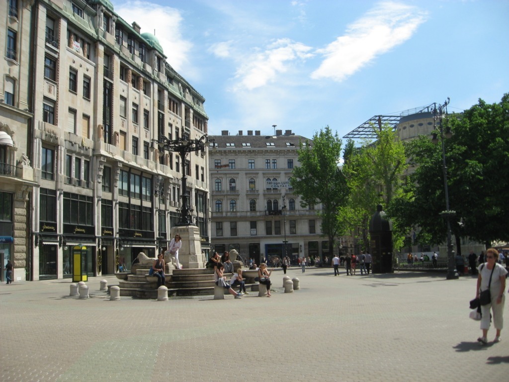 - Sights: Fountain with Lions, VArAsmarty MihA?ly (hungarian poet) sculpture, Gerbeaud House, ING-Office Building. — It has been called: from 1812 Theatrom piatcza, from 1830s Harmincad tere (German: Dreysigstplatz), from 1833 JA?tAkszA n square, since the 1840s SAta square (German: Spazierenplatz), from 1846 NAmet SzA nhA?z square (German: Deutsche Theaterplatz), from 1850 SzA nhA?z square (German: Theaterplatz), from 1866-tAl RAgi SzA nhA?z square (German: Alte Theaterplatz), from 1874 Gizella square, from 1918 KA?rolyi MihA?ly tAr, and since 1926 VArAsmarty square.