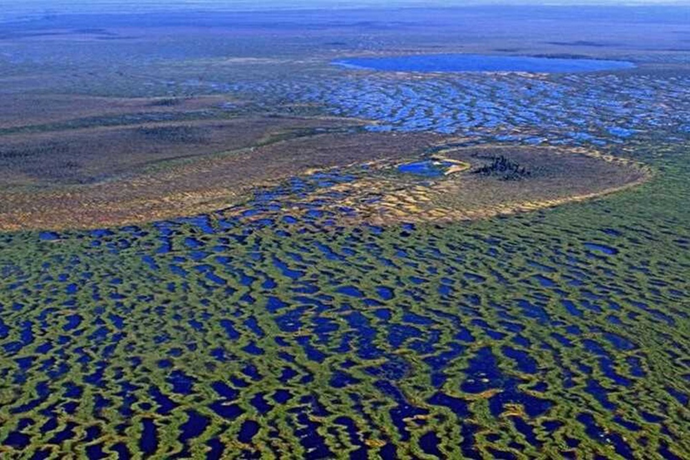 Formed after the last ice age roughly 10 000 years ago, the mire spans over 53 000 km² in Western Siberia and comprises three principal landscape units — raised bogs, transitional mires, and forested mires. Millennia of peat accumulation have built layers up to 10 m deep, dotted with hundreds of thousands of glistening lakes and sparse shrub islands, while a dendritic network of watercourses feeds the major tributaries of the Ob and Irtysh rivers. With virtually no roads or infrastructure, the swamp remains one of the most inaccessible corners of the planet, ideal for studying natural carbon and water cycles and observing rare bird and mammal species.