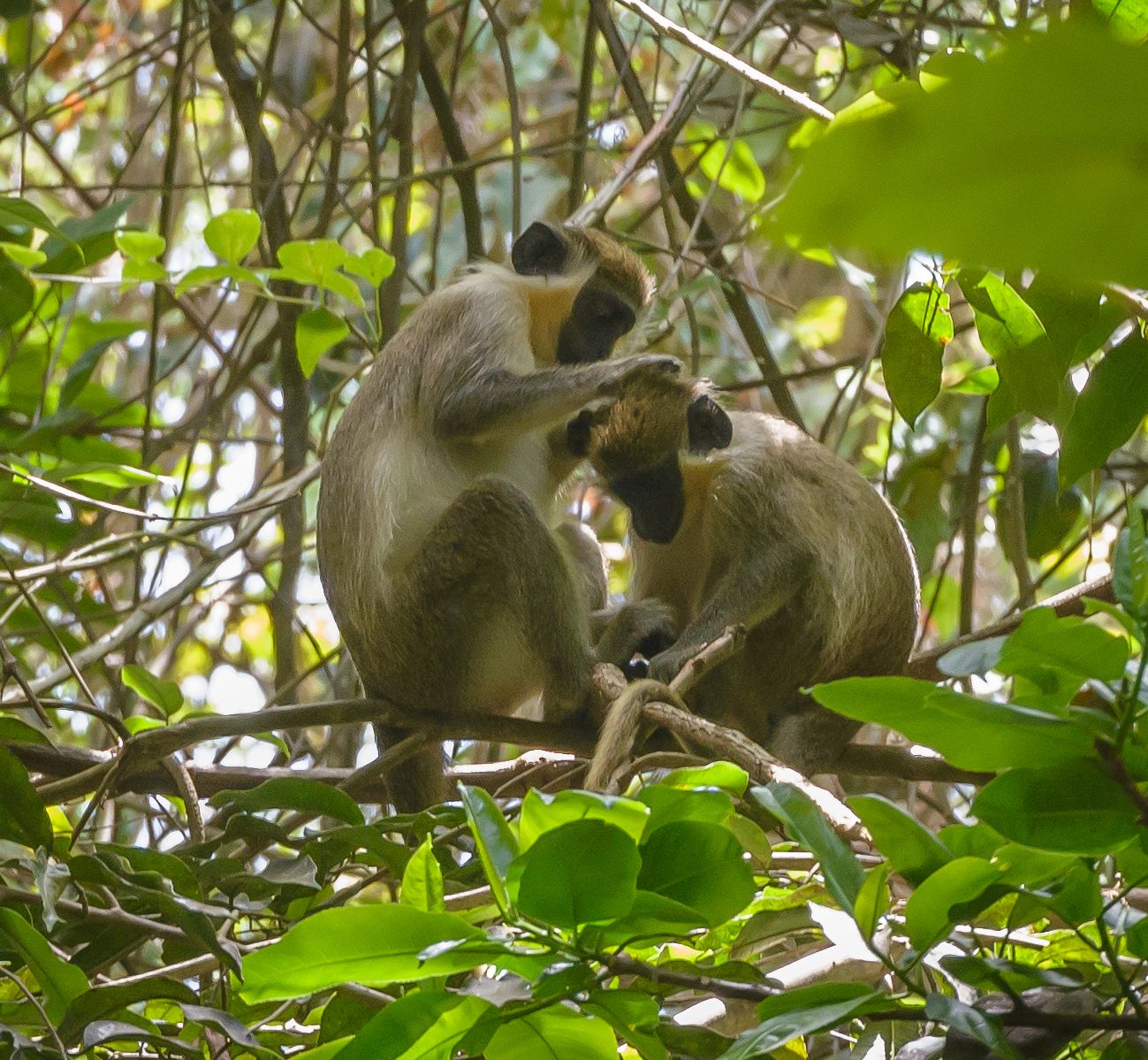 Here you can see wild green monkeys in their natural habitat and watch them being fed on a platform where bananas and other tasty fruits are left for them in the morning. You can also see ducks, chickens and guinea fowl, which you can feed by hand.