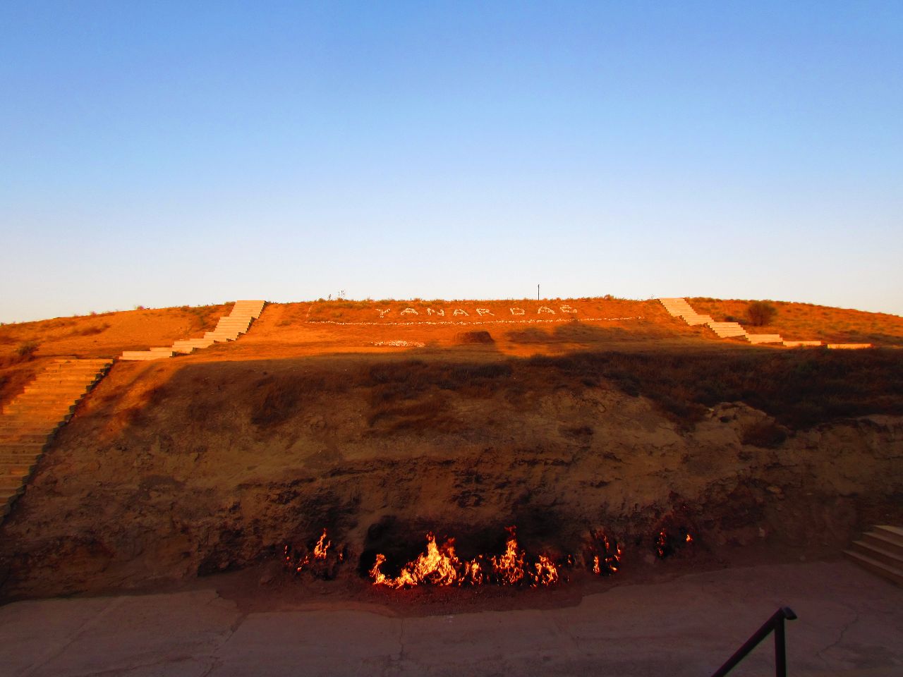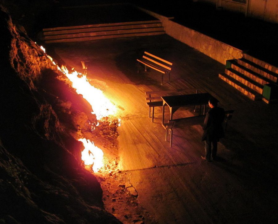A small limestone hill that is famous for its natural eternal fire. The local fire spring is about 10 meters wide and continues to burn since time immemorial. One of the first mentions of the Yanardag fire is found in the notes of the Venetian traveler Marco Polo, who lived more than seven centuries ago.