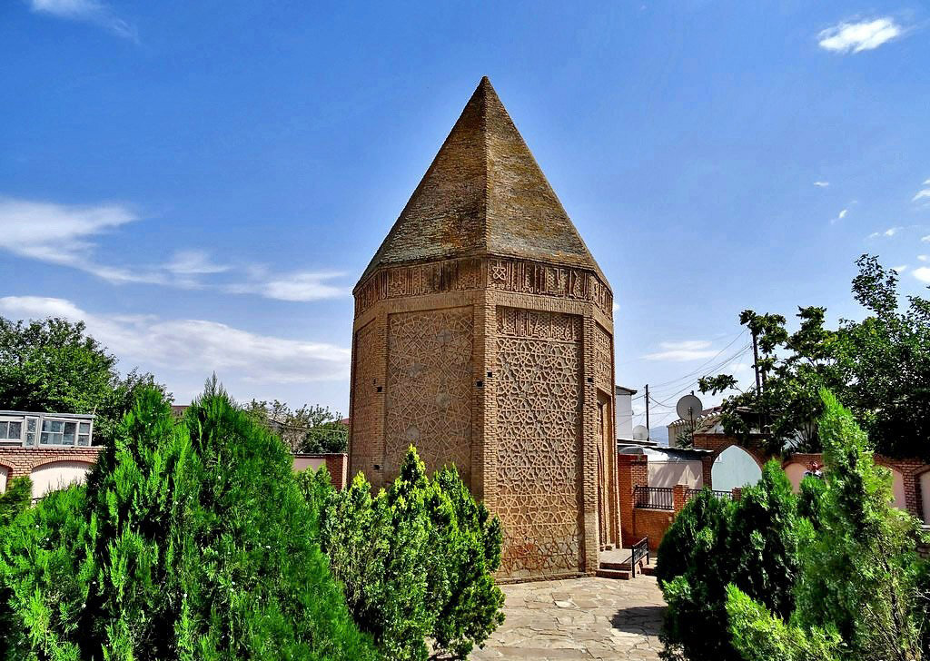 The tomb in which Yusif ibn Quseir rests has noticeable similarities with the Momine Khatun mausoleum, since both buildings were built around the same time and by the same architect. This mausoleum is also an octagonal tower topped with a pyramidal tent. The facades of the tomb are covered with carved patterned designs, surprisingly well preserved after so many centuries. Inside, the tomb is divided into two rooms: the upper chamber and, in fact, the crypt itself.